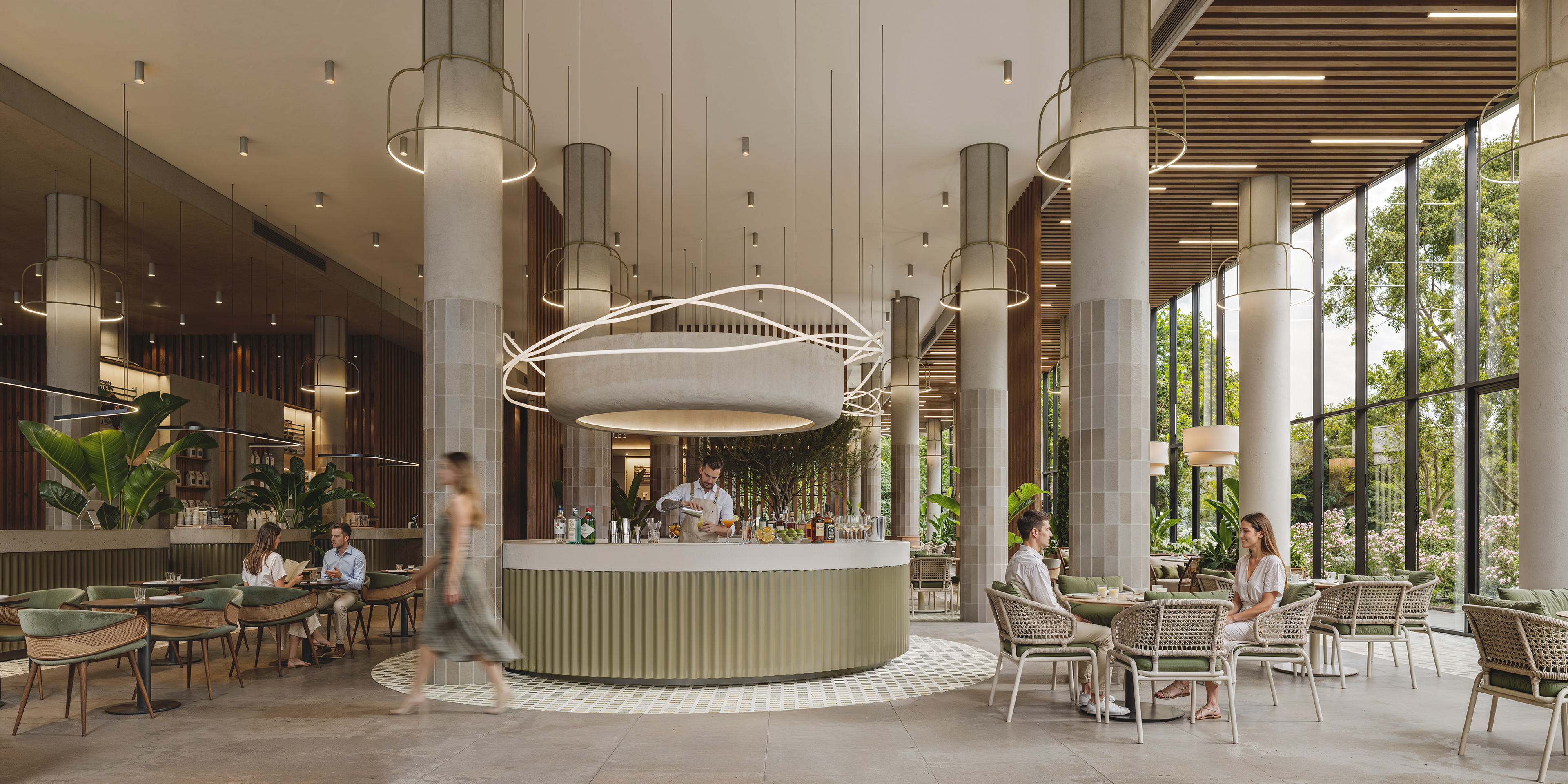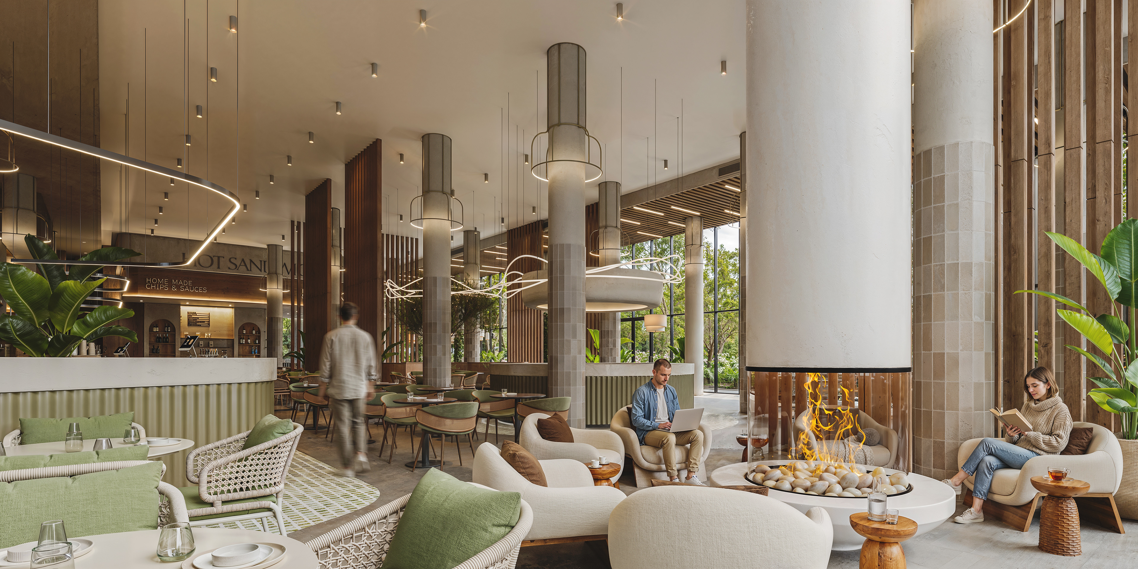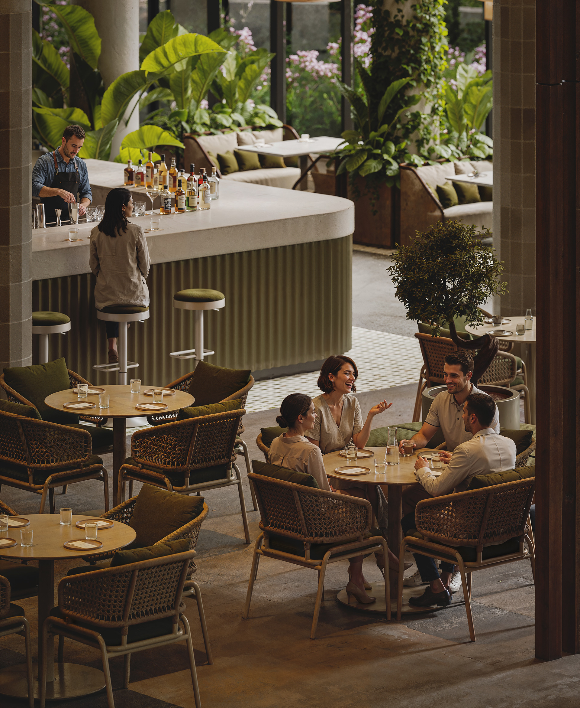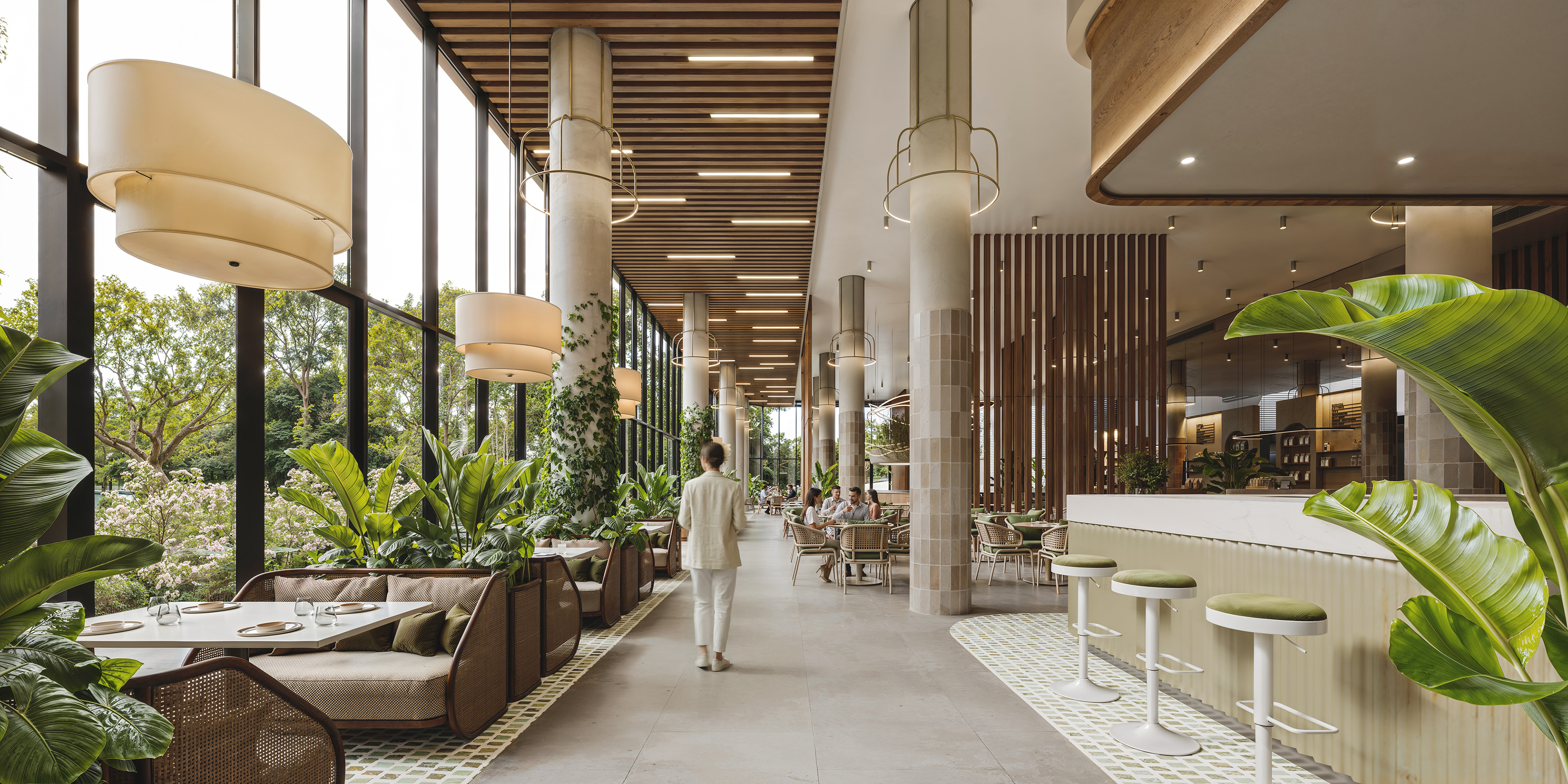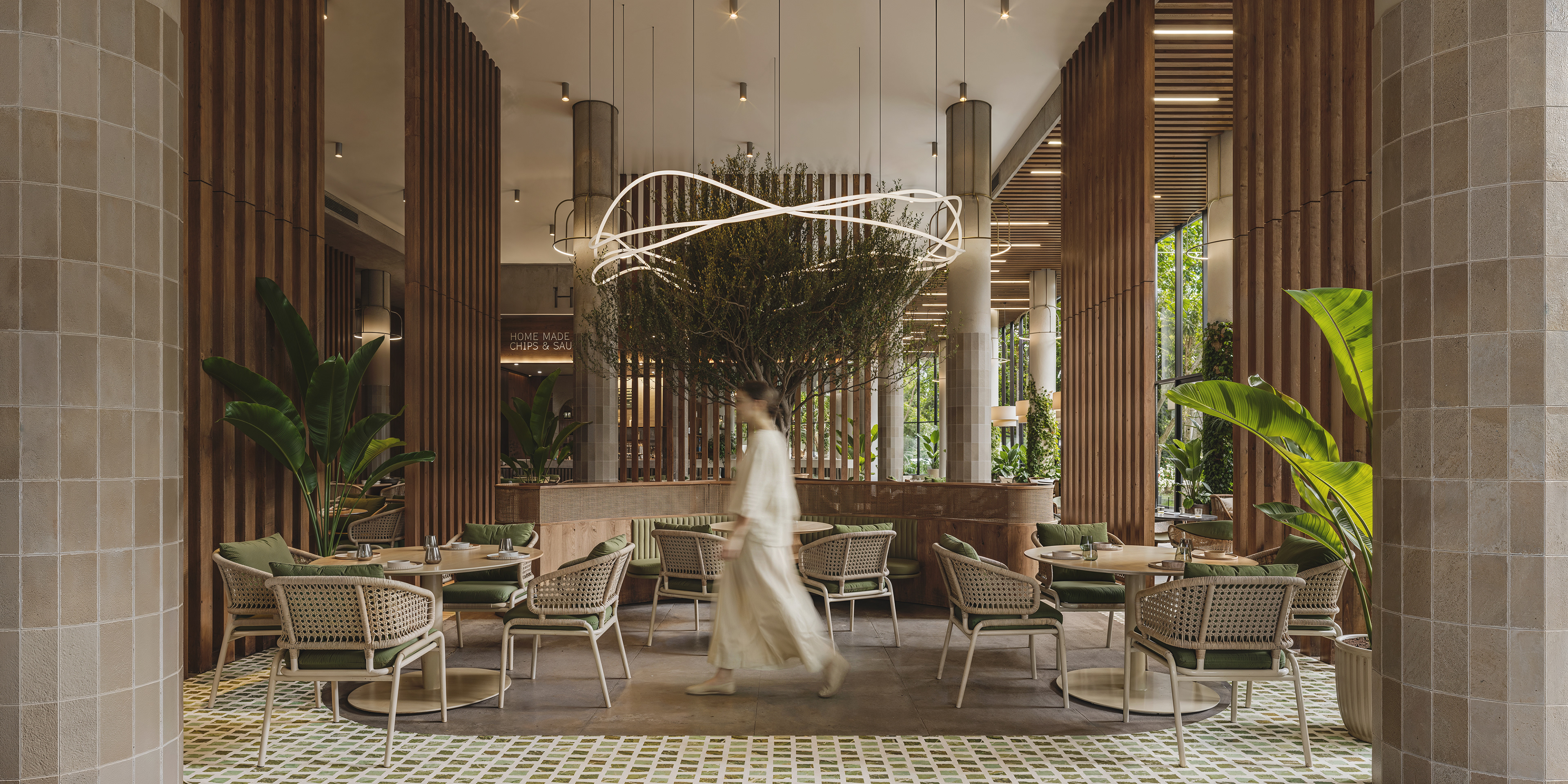 This food court interior project focuses on realism, atmosphere, and human connection — combining natural light, soft materials, and carefully balanced details to create a warm and welcoming environment. Located in Tbilisi, Georgia, the design emphasizes openness and comfort, blending contemporary architectural language with organic textures and greenery. The space is conceived as a lively yet calm setting, where people can gather, relax, and experience food within an inviting architectural frame. The result is a realistic, atmospheric visualization that highlights both spatial clarity and emotional warmth.